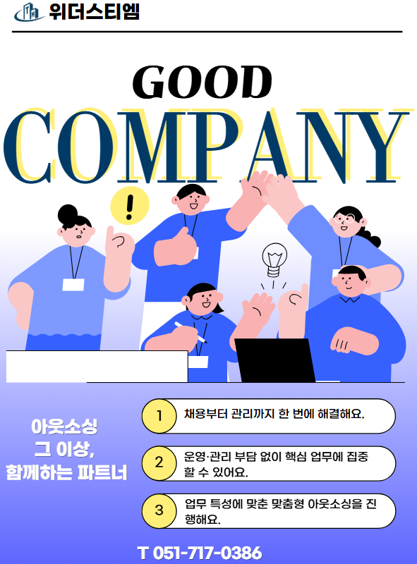 안녕하세요. 종합 아웃소싱 전문 기업 위더스티엠입니다.